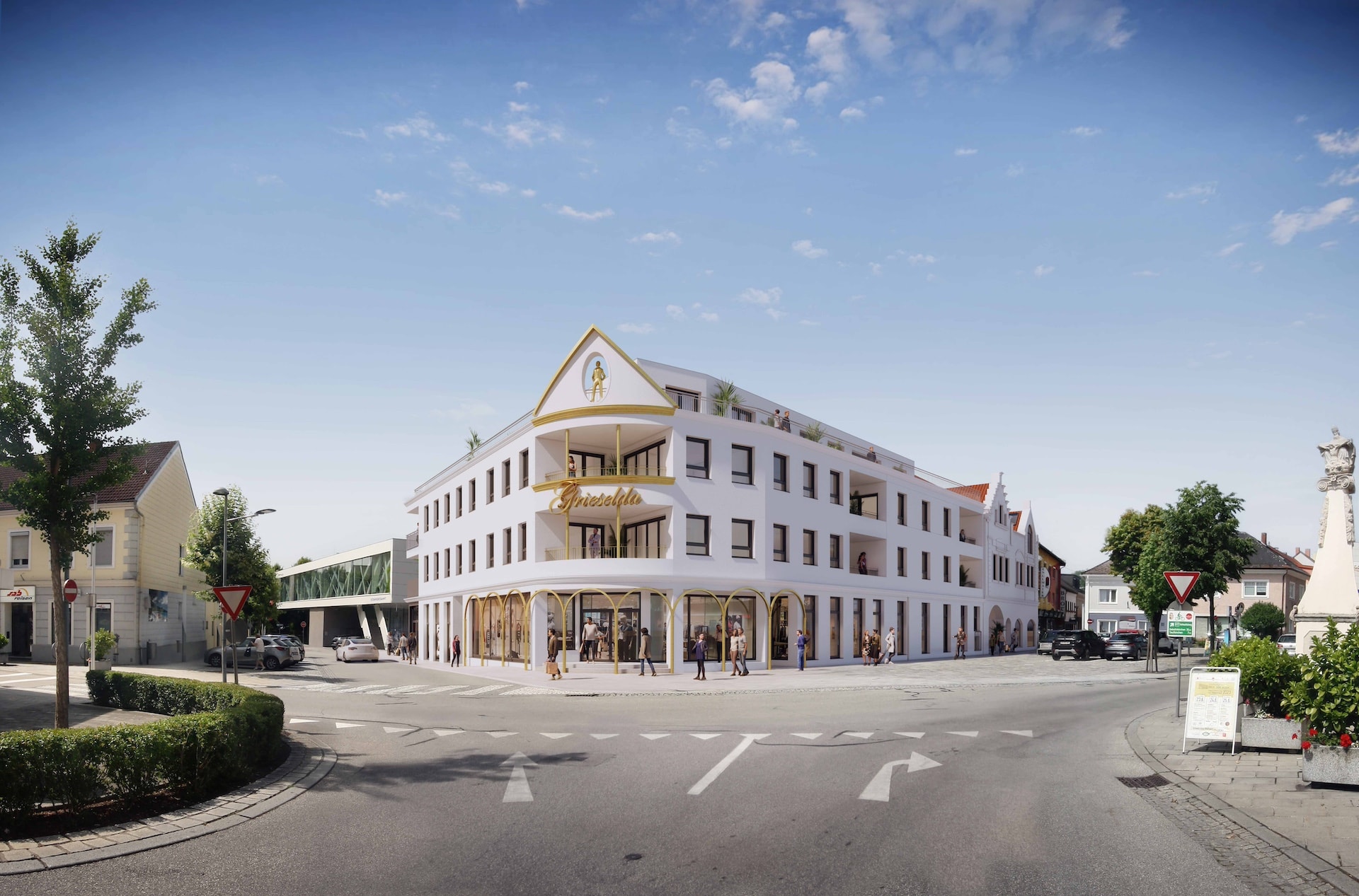 GRIESKIRCHEN: nach 5 Jahren Entwicklungszeit freuen wir uns über die Baugenehmigung unseres Projekts „Grieselda – das Trattnachquartier“. In den letzten Jahren wurden 4 Stadthäuser von uns erworben und in einer Gesamtplanung durch unseren Architekten DI Josef M. Hofer entwickelt. Durch den grünen Innenhof werden städtische Flächen entsiegelt und neuer Freiraum geschaffen. Das Projekt umfasst 42 Wohnungen, 3 Geschäftslokale und über 40 Tiefgaragenplätze. Wir möchten allen Mitwirkenden herzlich danken!